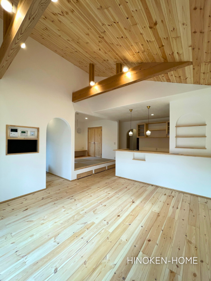 自然素材のぬくもりと開放感あふれる勾配天井のリビングを、ぜひ現地でご体感ください✨