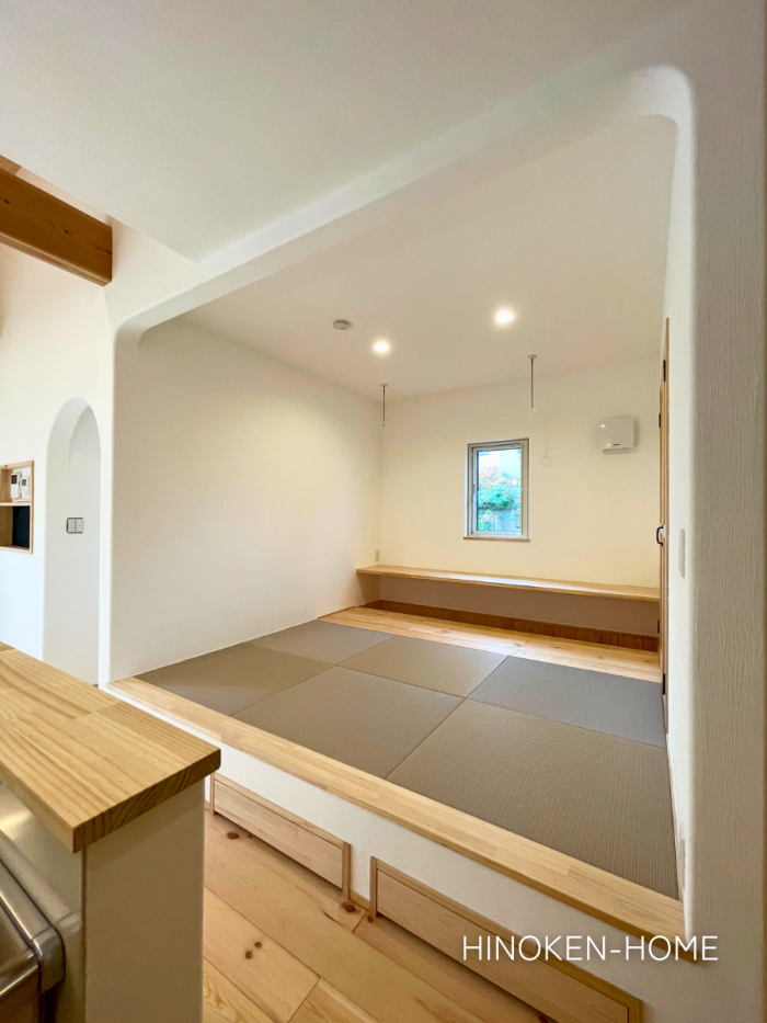 家族がゆったりくつろげる小上がり。リビングとのつながりで使い勝手も抜群。