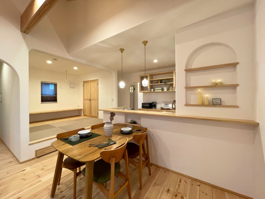 アーチや曲線を取り入れ、空間全体をやさしい印象にまとめました。