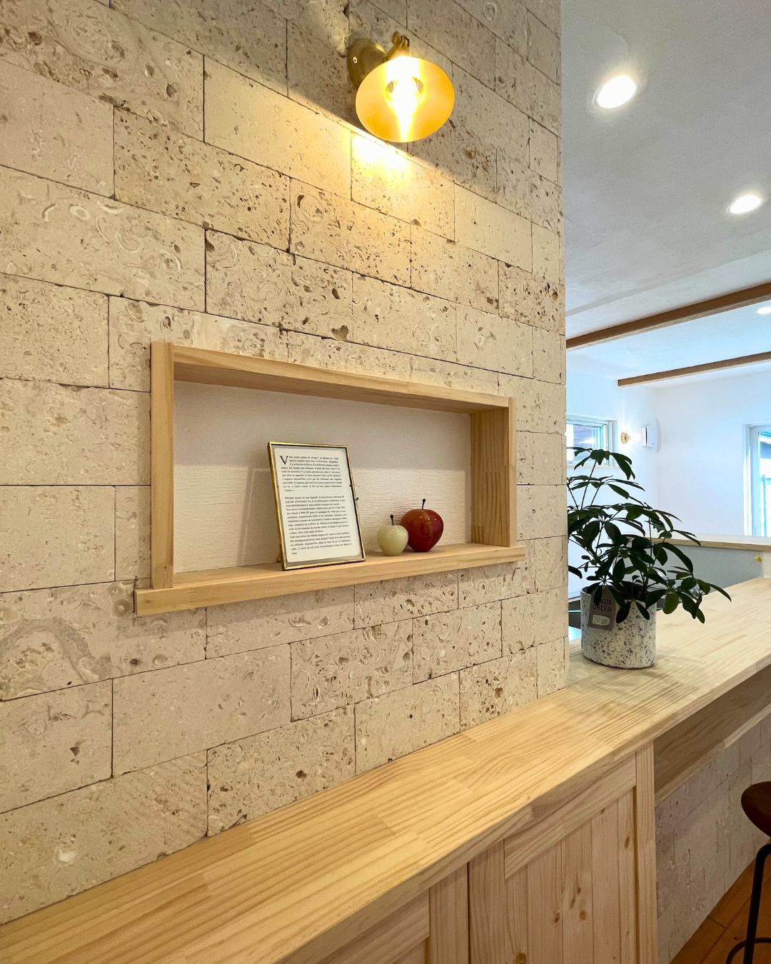 コーラルストーンがつくり出す自然の風合い。こだわりの素材ひとつひとつが調和し、日常に上質な空気感をもたらします。