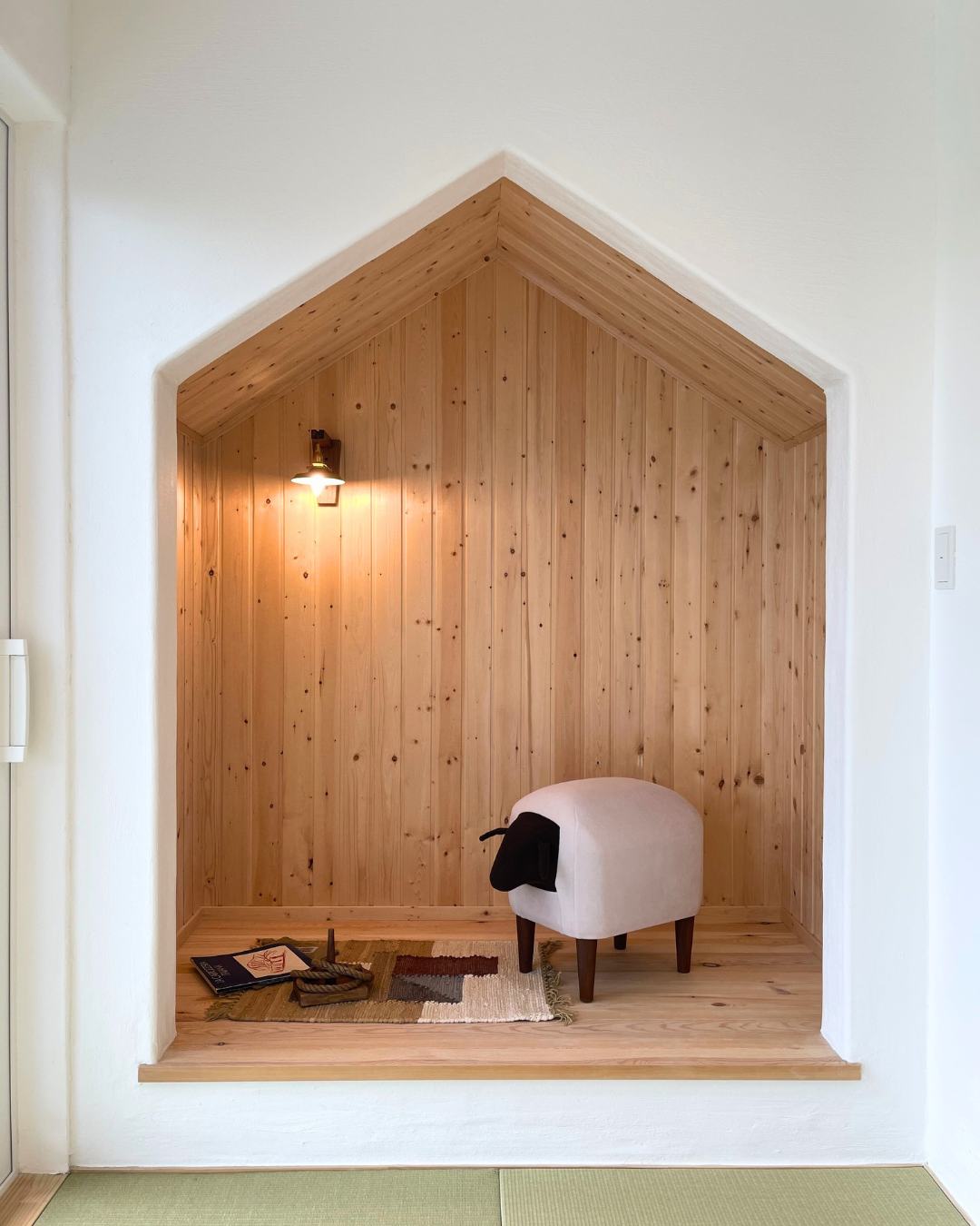 三角形の下がり壁でつくったヌック(おこもりスペース)。