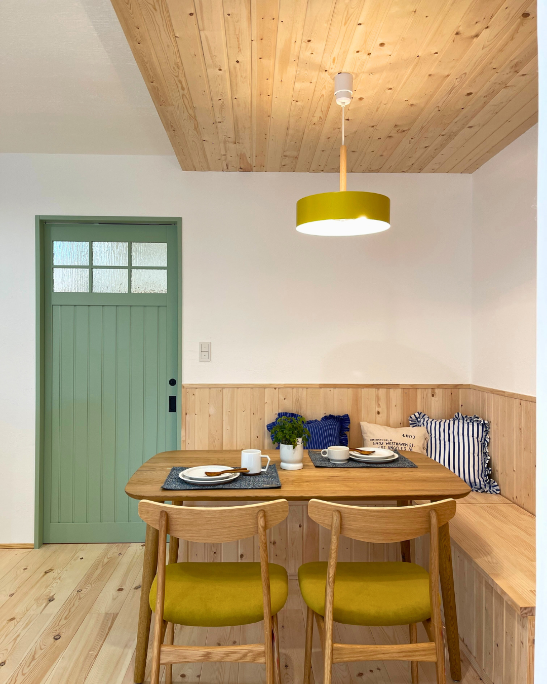 木の温もりたっぷり、ベンチスタイルのダイニング。日常がちょっと特別な時間に。
