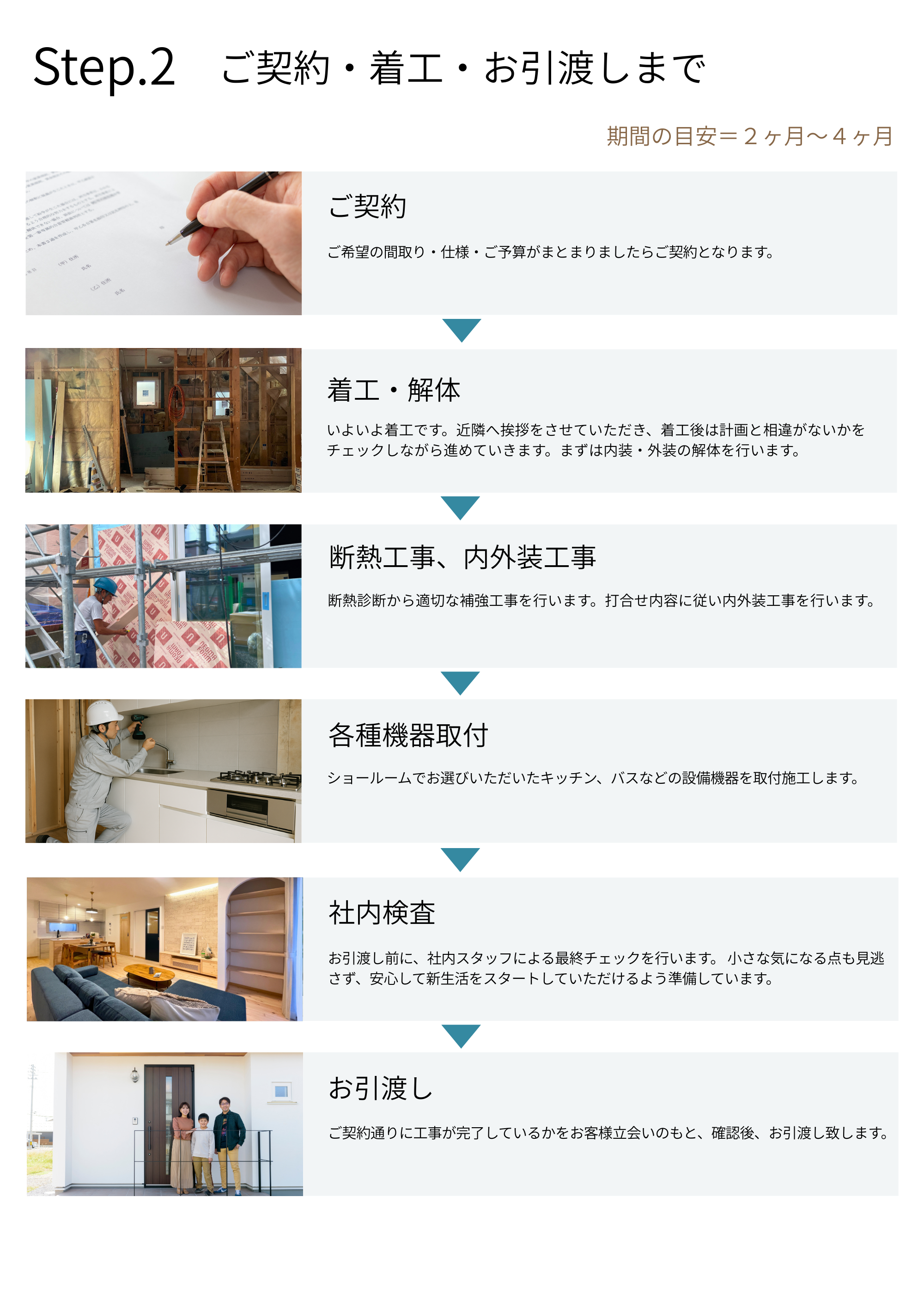 同時に工事内容に合わせたお見積りをご提示し、内容にご納得いただいたうえでご契約となります。
