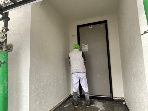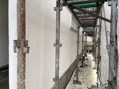 外壁漆喰仕上げ作業を行っております。
